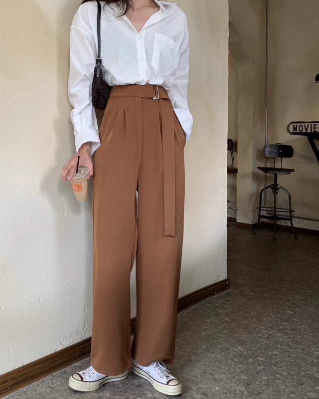 ワイドパンツ ベルト きれいめ レトロ 大人可愛い オシャレ Ol オフィスカジュアル おでかけ Choco Chaco